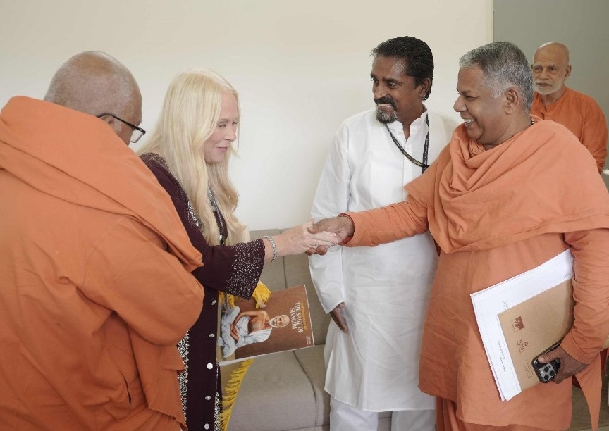 Dr Jill Renee Wood Founder Chairperson for IAM International Academic Media Ohio USA met with the disciples of Sree Narayana Guru at Sivagiri Mutt Varkala Thiruvnanthapuram, Kerala State India with Secretary General Satheesh Edmund Nicholas. The Sree Narayana Dharma Sanghom Trust Sivagiri Mutt Varkala Kerala State India, President Swami Satichidananda the, General Secretary Swami Subhangananda Board Member Swami Sukshmananda honored Dr Jill Renee Wood for her efforts to value Sree Narayana Guru and their works towards humanity under one God.